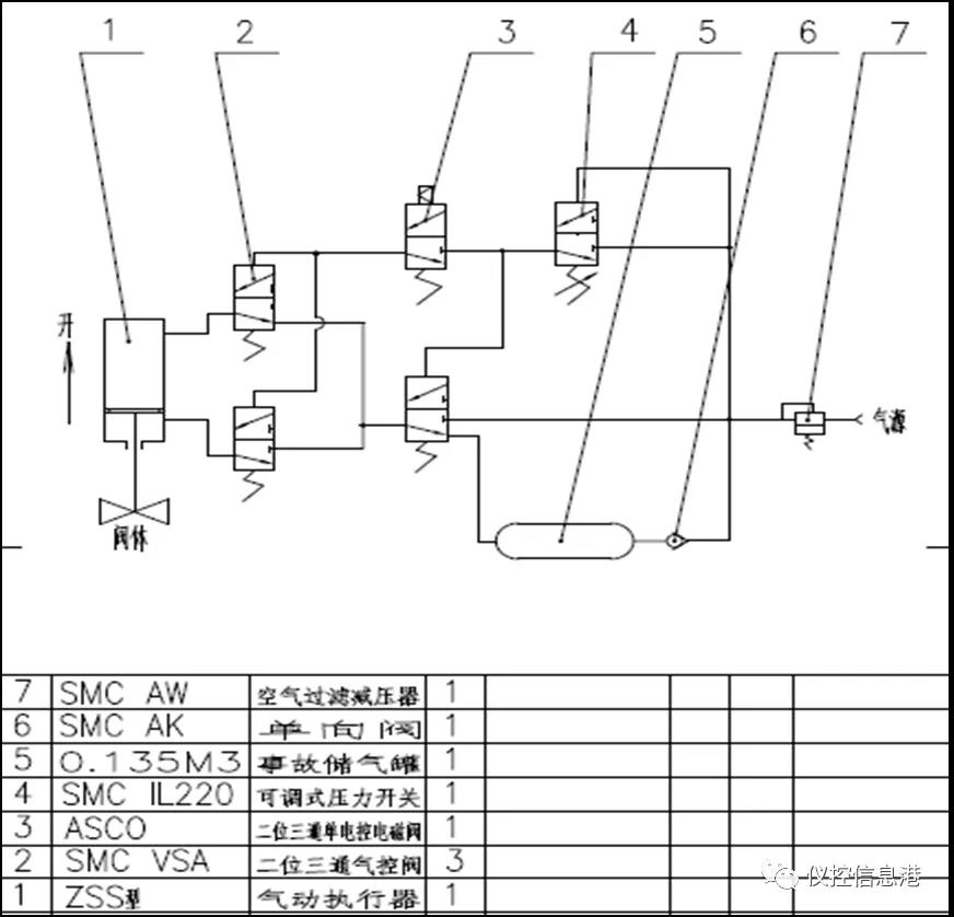 是不是這種閥門最好呢?也不一定。這種結(jié)構(gòu)的閥門最大的弊端是,不好判斷彈簧作用力的可靠性,當(dāng)聯(lián)鎖需要緊急啟動(dòng),而動(dòng)力風(fēng)又中斷的緊急狀態(tài)下,彈簧如果乏力,那閥門會(huì)無(wú)法關(guān)閉或者打開。而彈簧是否可靠,在正常聯(lián)鎖測(cè)試中不好判斷。 常見切斷閥的結(jié)構(gòu)就這三種模式,了解這三種氣缸結(jié)構(gòu)就了解閥門的故障狀態(tài)了嗎?這還遠(yuǎn)遠(yuǎn)不夠。氣缸的動(dòng)作模式完全由外部氣動(dòng)元件來(lái)控制,而氣控元件的組合根據(jù)聯(lián)鎖的需要千變?nèi)f化。舉幾個(gè)簡(jiǎn)單的例子: 1、單缸單作用在動(dòng)力風(fēng)中斷時(shí)一定會(huì)關(guān)閉或者打開嗎? 大部分聯(lián)鎖閥門在動(dòng)力風(fēng)中斷時(shí)要求關(guān)閉或者打開,但是聯(lián)鎖的設(shè)計(jì)一定是可用性和可靠性的綜合考慮。在考慮安全性的同時(shí)一定會(huì)考慮可用性,且有時(shí)候的動(dòng)力風(fēng)中斷并非全部中斷,而是局部動(dòng)力風(fēng)管線的受損。關(guān)閉某個(gè)切斷閥會(huì)造成較大的經(jīng)濟(jì)損失或者給生產(chǎn)帶來(lái)次生安全風(fēng)險(xiǎn)。這種情況下,一般閥門上會(huì)帶有鎖止閥,其作用就是當(dāng)動(dòng)力風(fēng)壓力降到一定的設(shè)定值時(shí),切斷動(dòng)力風(fēng),氣缸中的壓力始終推動(dòng)彈簧使得閥門保持原有狀態(tài)。加上鎖止閥就變?yōu)镕L。什么情況下用到這種閥呢,比如大型的氣體凈化項(xiàng)目,當(dāng)下游生產(chǎn)裝置發(fā)生故障時(shí),需要緊急切斷上游供料閥門,下游裝置全部停工,可能會(huì)造成幾千萬(wàn)的經(jīng)濟(jì)損失。但是動(dòng)力風(fēng)暫時(shí)故障,能在短時(shí)間恢復(fù),倒不如設(shè)置成FLC。