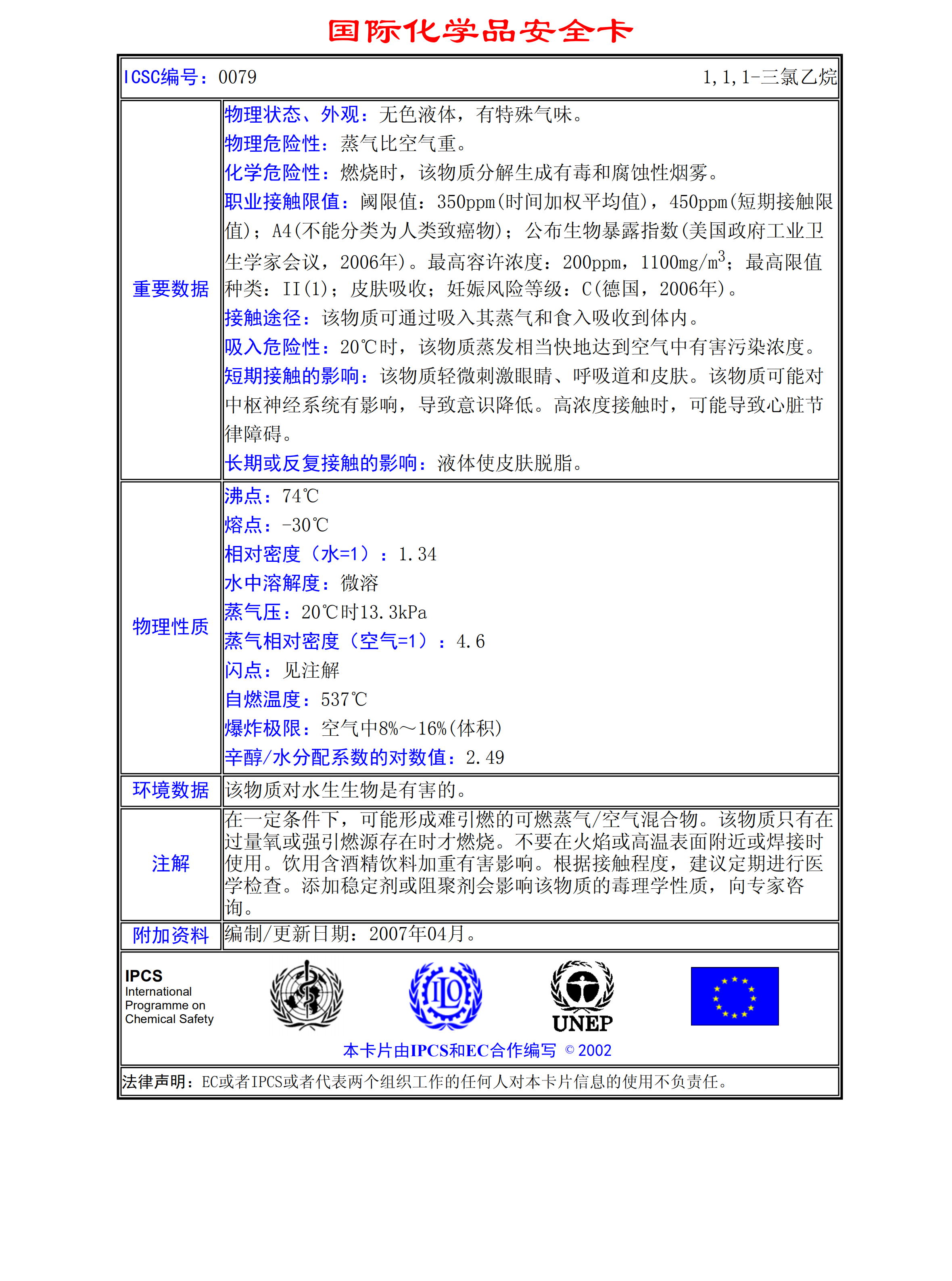 1,1,1-三氯乙烷MSDS