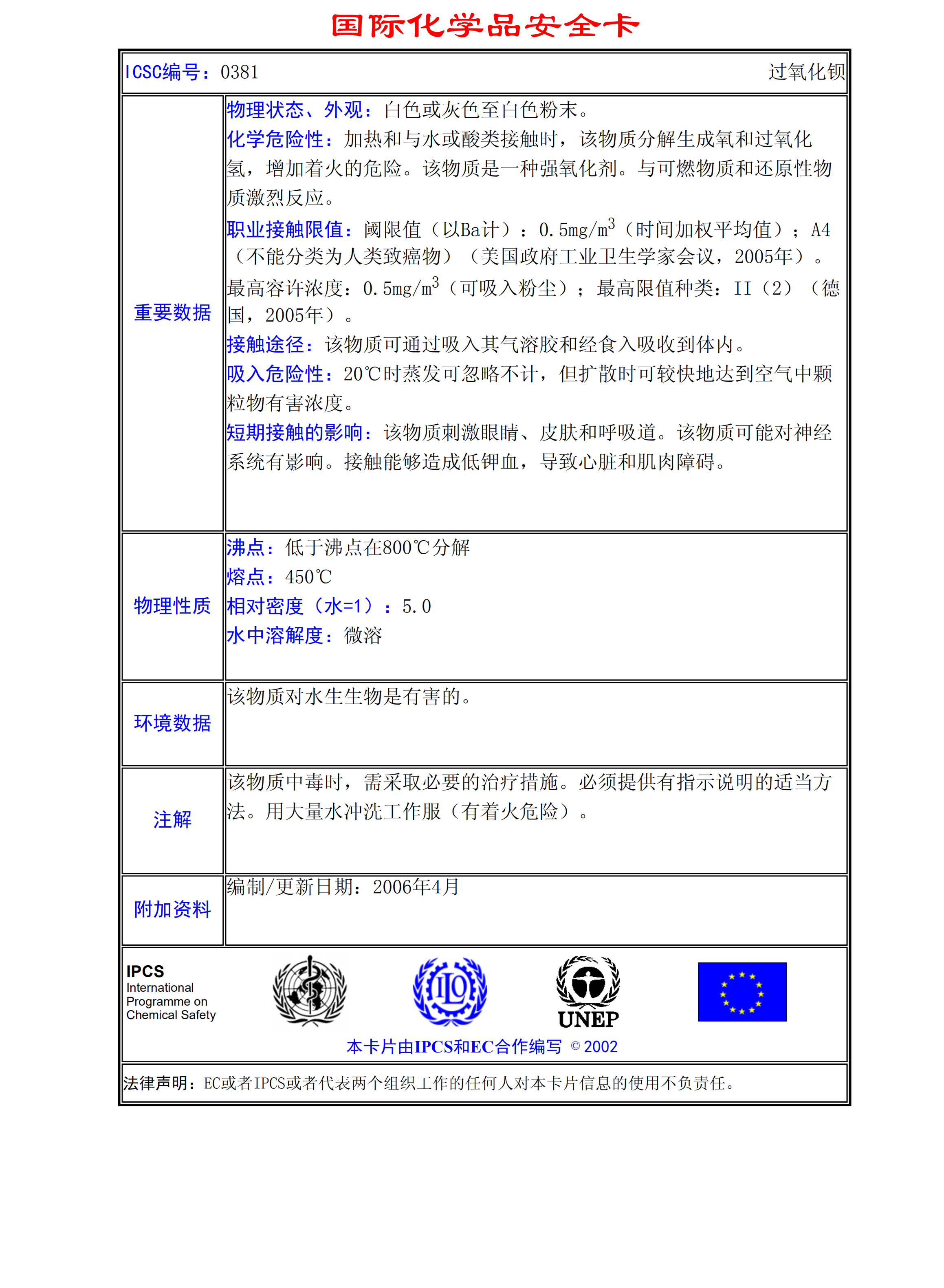 過氧化鋇MSDS