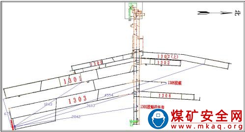 事故當(dāng)班,綜掘隊(duì)和防沖項(xiàng)目部在 1303 工作面泄水巷及 3 號(hào)聯(lián)絡(luò)巷施工。