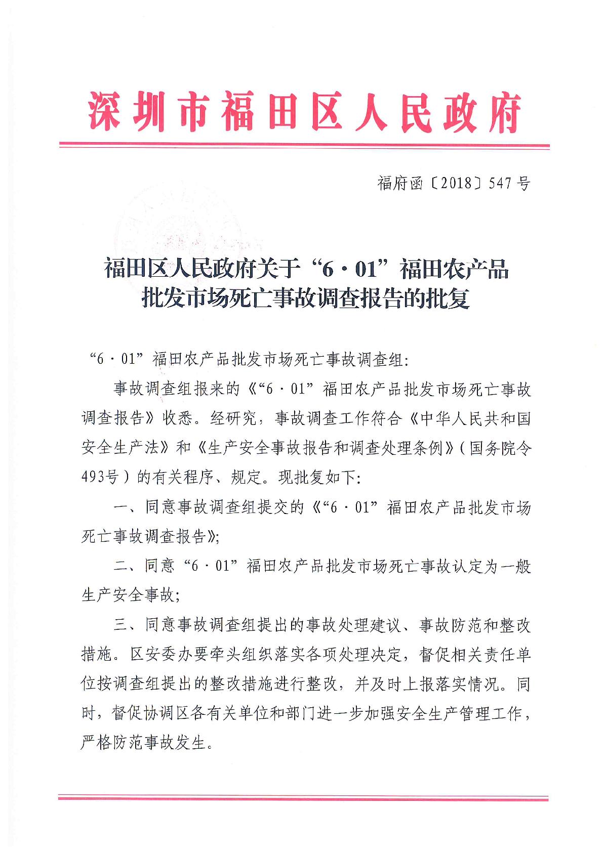 “6.01”福田農(nóng)產(chǎn)品批發(fā)市場死亡事故調(diào)查