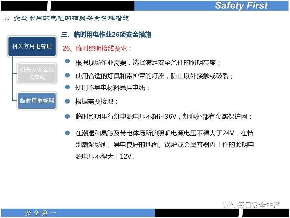 (4)在一些觸電危險(xiǎn)較大的場(chǎng)所,采取安全低電壓電流;
