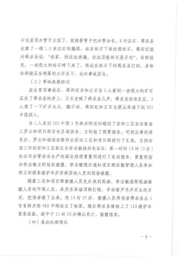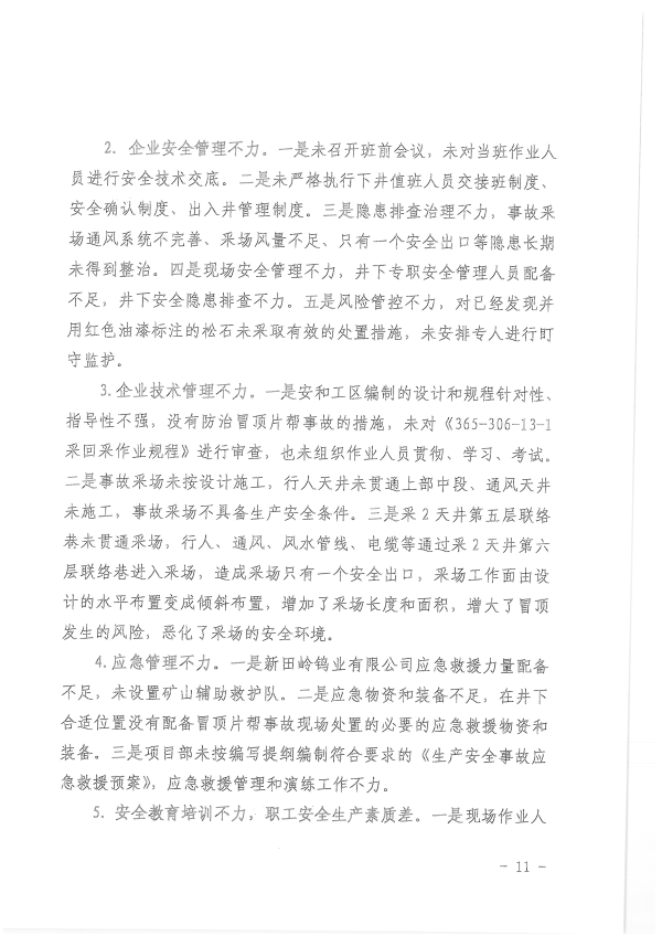 湖南新田嶺鎢業(yè)有限公司“4?19”冒頂片幫事故調(diào)查報告