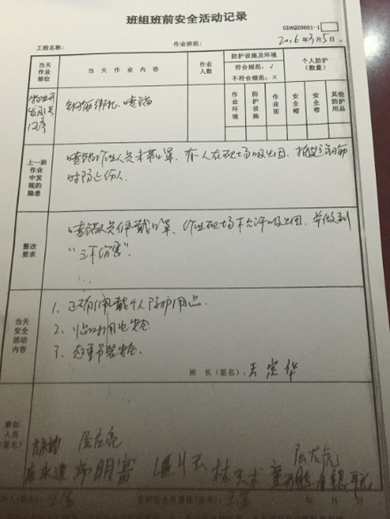 該項(xiàng)目施工單位對(duì)從業(yè)人員有開展安全生產(chǎn)教育培訓(xùn),對(duì)于施工安全知識(shí)和安全技術(shù)交底,并有相關(guān)記錄,符合《安全生產(chǎn)培訓(xùn)管理辦法》的規(guī)定,從業(yè)人員安全知識(shí)和技術(shù)交底見圖七。