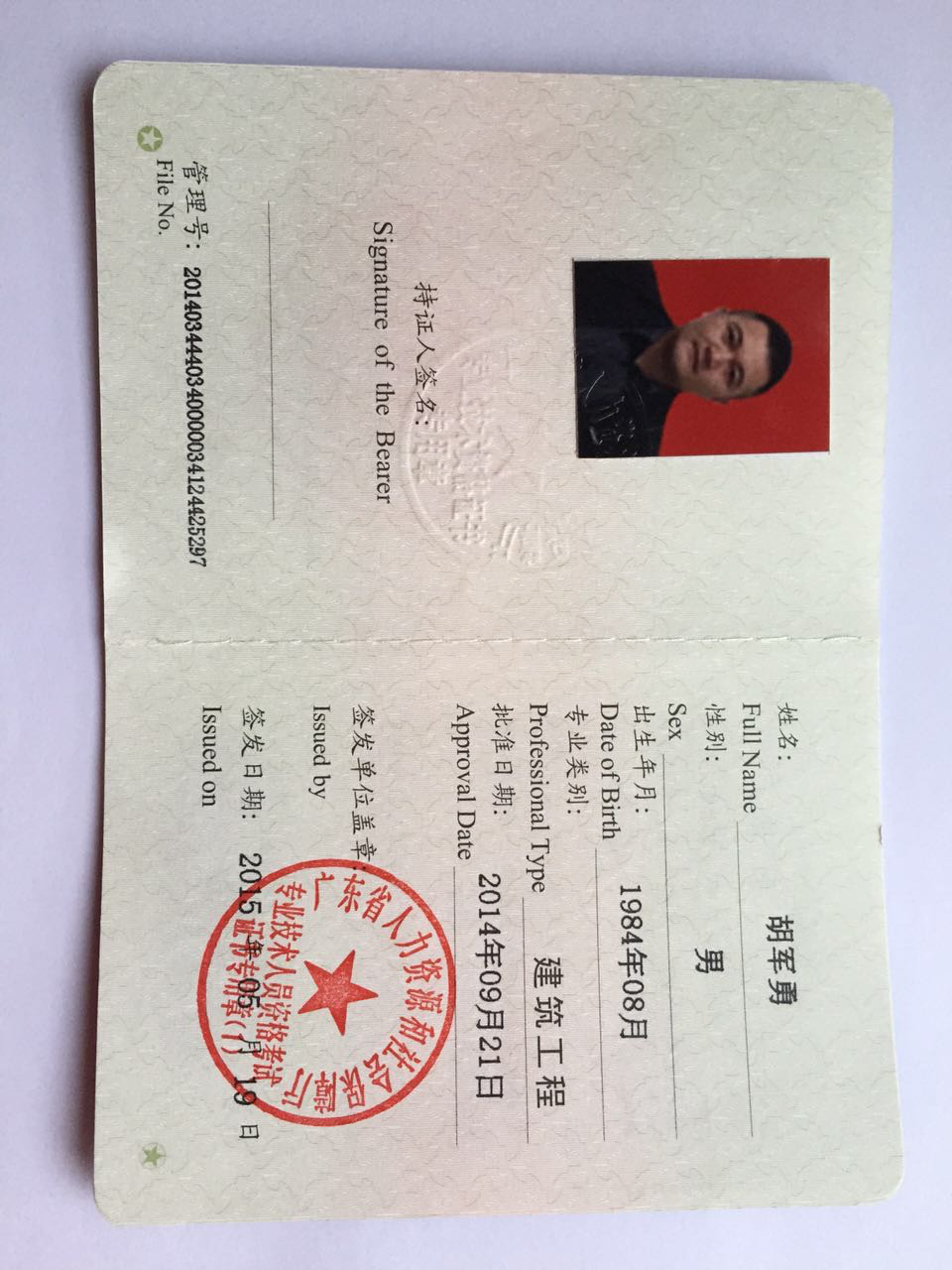 一級(jí)建造師 | 胡軍勇 | J200457211 | 00451094 |