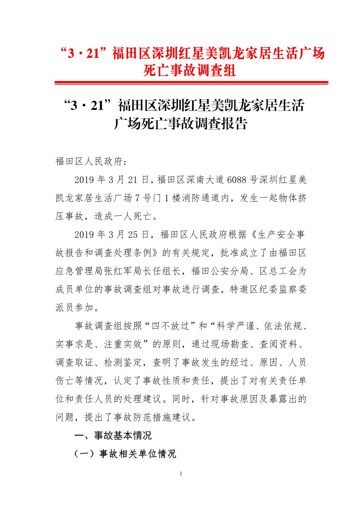 “3.21”福田區(qū)深圳紅心美凱龍家居生活廣場死亡事故調(diào)查報(bào)告