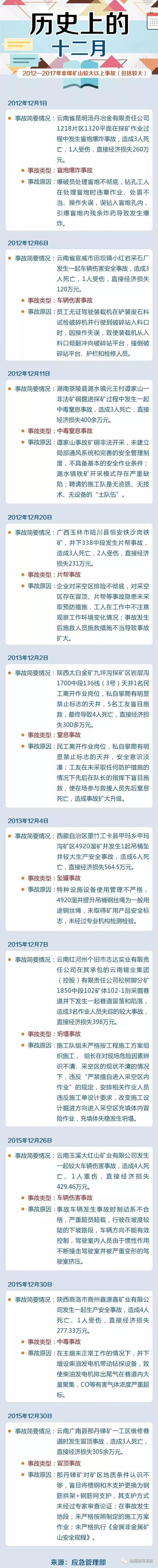據(jù)不完全統(tǒng)計(jì),2012年-2017年12月非煤礦山發(fā)生較大以上事故(包括較大)10起,中毒和窒息類事故多發(fā)!