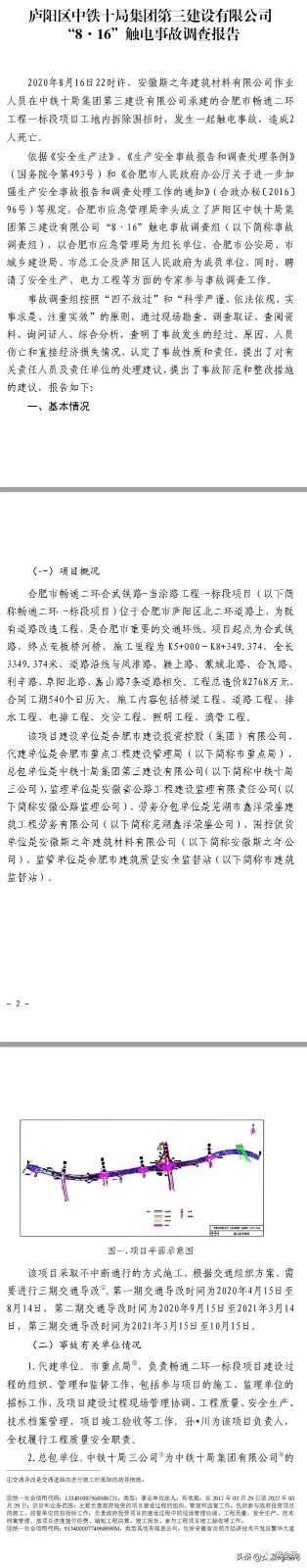 12月2日,合肥應(yīng)急管理局在其官網(wǎng)發(fā)布廬陽區(qū)中鐵十局集團(tuán)第三建設(shè)有限公司 “816”觸電事故調(diào)查報(bào)告。