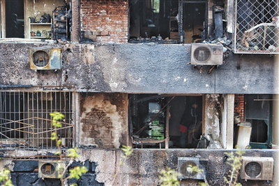 該小區(qū)4號樓1單元101的劉先生家則基本上化為灰燼。記者在他家看到,墻壁被燒成焦黑色,地上沉積著到腳踝的灰燼,整個(gè)房子被燒成毛坯房樣?!吧嘲l(fā)、柜子這些大件物品都沒有了,廚房、衛(wèi)生間都是玻璃的,也都燒化了,還有一些字畫。”劉先生說,家里藏有不少洋酒等,損失慘重。