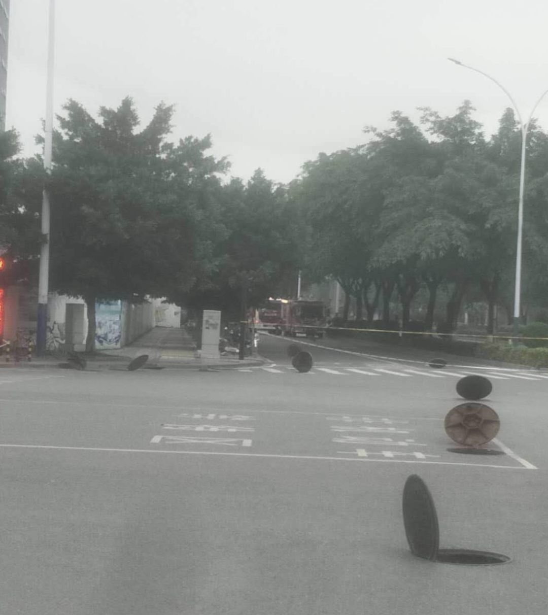 所有井蓋都立了起來,網(wǎng)友推測(cè)可能是在“通氣”