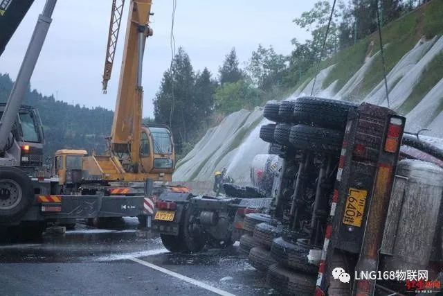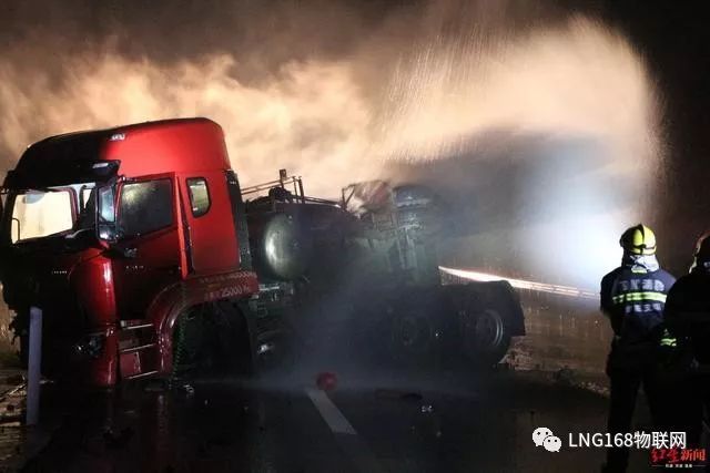 消防救援人員介紹,由于事故車輛為LNG(液化天然氣)動(dòng)力,事故導(dǎo)致LNG氣罐閥門變形泄漏,且LNG儲(chǔ)存罐處于滿載狀態(tài),如發(fā)生爆炸燃燒后果不堪設(shè)想。根據(jù)現(xiàn)場情況,救援人員決定采取放空稀釋的方法進(jìn)行處置。隨后,救援行動(dòng)展開,一是高速交警立即對(duì)該路段進(jìn)行封鎖,實(shí)施現(xiàn)場警戒;二是消防救援人員利用開花水槍、泡沫槍分別對(duì)氣罐泄漏點(diǎn)及周邊進(jìn)行稀釋覆蓋,防止發(fā)生次生災(zāi)害。同時(shí),救援人員調(diào)集大型吊車和裝載車對(duì)事故車輛進(jìn)行起吊拖離。