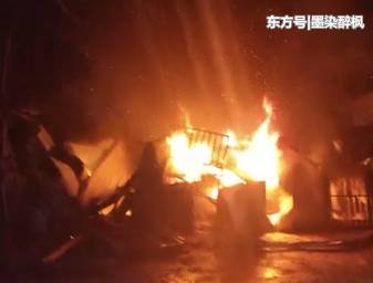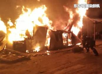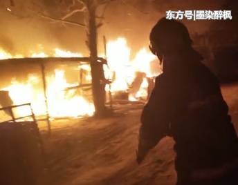 消防人員到達(dá)火災(zāi)現(xiàn)場(chǎng)時(shí),板房正猛烈燃燒,火苗躥出兩米高,濃濃黑煙不斷冒出。就在起火的板房外,一個(gè)煤氣罐正橫臥在地上,情況十分危急。消防員迅速用兩支水槍,近距離對(duì)明火進(jìn)行壓制。