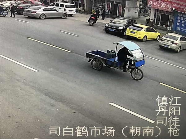 功夫不負(fù)有心人,民警終于在丹陽(yáng)丹伏路與觀鶴路交叉口,發(fā)現(xiàn)了拉了兩只煤氣瓶的嫌疑車輛。通過(guò)監(jiān)控跟進(jìn)和倒查,警方鎖定了該車最后駛向丹陽(yáng)司徒西麻村道里一段軌跡。但是,嫌疑人外貌特征不明顯。