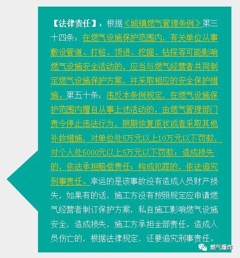 2018年11月11日上午7時(shí)許,青島市北區(qū)嘉定路16號保利里院里小區(qū)5號樓發(fā)生一起居民燃?xì)忾W爆事故,事故造成2人受傷以及多戶居民財(cái)產(chǎn)損失。據(jù)報(bào)道,事故原因調(diào)查及善后工作正在進(jìn)行中......【爆炸新聞】10多層樓玻璃被炸飛!2人受傷!青島一小區(qū)發(fā)生燃?xì)忾W爆事故!這波知識必須要知道!?天然氣清潔高效,其推廣使用,給市民帶來了極大的方便。但因燃?xì)夤芫W(wǎng)遍布城市地下區(qū)域,管道伸入到居民家中,居民又是直接操作者使用者,燃?xì)獍踩珕栴}就成了涉及每個(gè)人的問題。無論是政府、燃?xì)饨?jīng)營企業(yè)、還是居民用戶都應(yīng)格外重視燃?xì)獍踩岣呷細(xì)獍踩?zé)任意識,避免事故的發(fā)生。為此,應(yīng)在查明“11.11青島市北區(qū)保利里院里小區(qū)燃?xì)忾W爆事故”原因的基礎(chǔ)上,落實(shí)各主體責(zé)任,并依法維護(hù)各自權(quán)益。律師根據(jù)多年既往案例,對燃?xì)馐鹿噬婕暗姆蓡栴}進(jìn)行評析,希望能為相關(guān)責(zé)任主體提供有益的法律建議。01發(fā)生燃?xì)馐鹿蕰r(shí),各方應(yīng)如何進(jìn)行責(zé)任自查?1、燃?xì)夤拘枰圆榈膬?nèi)容包含但不限于:在為用戶開通燃?xì)鈺r(shí)是否進(jìn)行了用氣安全教育,是否定期進(jìn)行用氣安全宣傳;是否定期入戶安檢,用戶是否在安檢單上簽字確認(rèn),發(fā)現(xiàn)隱患后是否及時(shí)補(bǔ)檢,用戶是否配合隱患整改;若用戶安裝有燃?xì)鈭?bào)警器,燃?xì)鈭?bào)警器是否連接電源,燃?xì)鈭?bào)警器是否連接電磁閥?燃?xì)鈭?bào)警器安裝是否符合《城鎮(zhèn)燃?xì)庠O(shè)計(jì)規(guī)范》;用戶的燃?xì)馄骶撸ㄈ細(xì)庠罹?、燃?xì)鉄崴鳎┦欠翊嬖诔谑褂?,安裝人員及單位是否具備相應(yīng)資格、資質(zhì);用戶是否存在裝修過程中未通知燃?xì)夤?,私改燃?xì)夤艿馈袢細(xì)夤艿?、將燃?xì)庠O(shè)施作為負(fù)重支架堆放、懸掛物品或者將燃?xì)夤艿雷鳛殡娖髟O(shè)施的接地導(dǎo)體等隱患;用戶是否規(guī)范用氣,用氣后及時(shí)關(guān)閉灶前閥;用戶是否存在自傷自殘等情況;是否投保相關(guān)保險(xiǎn)等。2、事故受害方責(zé)任追究過程中需要考量的內(nèi)容包含但不限于:燃?xì)夤驹谥脫Q通氣時(shí)是否履行了安全宣傳教育;燃?xì)夤臼欠衩磕甓既霊舭矙z并對燃?xì)怆[患提出整改意見;燃?xì)夤景惭b燃?xì)庠?、燃?xì)鈭?bào)警器和電磁閥是否符合國家規(guī)范;燃?xì)夤咎峁┑娜細(xì)庠?、燃?xì)鈭?bào)警器和電磁閥是否質(zhì)量合格;其他需要注意的問題。3、燃?xì)庵鞴懿块T履責(zé)的重點(diǎn)內(nèi)容:1)作為燃?xì)庵鞴懿块T,在事故發(fā)生后,進(jìn)行事故調(diào)查,協(xié)調(diào)燃?xì)夤?、受害人和公安、消防、居民辦事處等部門,委托專家組出具事故調(diào)查的專家分析意見,客觀公正的處理善后事宜,是本部門的法定職責(zé);2)作為此次事故調(diào)查的主管部門,應(yīng)嚴(yán)格依法依規(guī)處理,還應(yīng)注意事發(fā)現(xiàn)場第一手資料的留存;3)嚴(yán)格遵守法定程序建立事故處理檔案,為今后司法處理保存證據(jù)材料,避免被燃?xì)獍讣芎θ嘶蚱渌黧w投訴;4)依法依規(guī)行使事故調(diào)查職責(zé)過程中,除了追求效率,還應(yīng)注意保護(hù)各方當(dāng)事人的合法權(quán)利。例如,涉及鑒定應(yīng)提 前通知各方當(dāng)事人,證據(jù)的封存、解封應(yīng)通知各方當(dāng)事人到場,涉案相關(guān)信息主動公開或依申請公開,選聘事故調(diào)查專家組成員時(shí)應(yīng)留存各專家的資質(zhì)證明等。?02燃?xì)馐鹿拾l(fā)生后進(jìn)入訴訟程序的可能結(jié)果分析根據(jù)既往辦案經(jīng)驗(yàn)及既有案例,律師總結(jié)法院裁判觀點(diǎn)如下:1、關(guān)于事故事實(shí)的認(rèn)定,一般以事故調(diào)查專家組出具的專家分析意見為準(zhǔn)。2、在居民燃?xì)獗及讣?,燃?xì)夤竞苌儆胁怀袚?dān)責(zé)任的情形。3、作為事故的受害方,選擇盡可能多的與事故相關(guān)的被告,越有利于維護(hù)自身權(quán)利。4、司法機(jī)關(guān)在民事責(zé)任領(lǐng)域,一般會站在同情弱者的角度裁判。5、若燃?xì)獗ㄊ鹿氏等藶楣室庠斐?,行為人可能會涉嫌刑事犯罪,罪名包括但不限于爆炸罪、以危險(xiǎn)方法危害公共安全罪等。?案例一12012年7月27日重慶奉節(jié)縣一居民家發(fā)生天然氣意外泄漏事故,發(fā)生事故的居民家中所有家具和電器都被燒毀,窗戶的玻璃已被震爛。爆炸造成一家6人燒傷,最終一人搶救無效死亡。據(jù)網(wǎng)上報(bào)道爆炸是由于天然氣管道與輸氣軟管之間存在縫隙,導(dǎo)致天然氣泄漏引發(fā)的。在該戶家中,發(fā)現(xiàn)新買的燃?xì)庠罹?,是個(gè)三無產(chǎn)品。該戶的燃?xì)夤艿?,是由兩根軟管接起來的,一根軟管不夠長,中間還用一根硬塑料管連了起來,還使用了膠水來粘接,這是非常危險(xiǎn)的作法,連接的塑料管是硬的,天然氣完全可能因連接處泄漏出來。也許是用戶點(diǎn)了火,也許只是開了某一種電器的開關(guān),就引起了天然氣爆炸,隨后的火焰擴(kuò)散,屋內(nèi)東西全部燒毀。