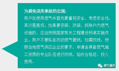 2012年7月27日重慶奉節(jié)縣一居民家發(fā)生天然氣意外泄漏事故,發(fā)生事故的居民家中所有家具和電器都被燒毀,窗戶的玻璃已被震爛。爆炸造成一家6人燒傷,最終一人搶救無效死亡。據(jù)網(wǎng)上報(bào)道爆炸是由于天然氣管道與輸氣軟管之間存在縫隙,導(dǎo)致天然氣泄漏引發(fā)的。在該戶家中,發(fā)現(xiàn)新買的燃?xì)庠罹?,是個(gè)三無產(chǎn)品。該戶的燃?xì)夤艿?,是由兩根軟管接起來的,一根軟管不夠長,中間還用一根硬塑料管連了起來,還使用了膠水來粘接,這是非常危險(xiǎn)的作法,連接的塑料管是硬的,天然氣完全可能因連接處泄漏出來。也許是用戶點(diǎn)了火,也許只是開了某一種電器的開關(guān),就引起了天然氣爆炸,隨后的火焰擴(kuò)散,屋內(nèi)東西全部燒毀。