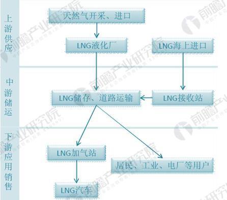 LNG 產業(yè)鏈是一條貫穿天然氣產業(yè)全過程的資金龐大,技術密集的完整鏈系。由陸地或海上油田開采的天然氣在液化工廠經過預處理后進行液化,生產的 LNG 按照貿易合同,通過船運或槽車運輸到 LNG 接收站儲存,再氣化,經由管網送到用戶。具體來看,整個 LNG 產業(yè)鏈主要包括上、中、下游三個環(huán)節(jié)。