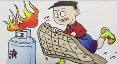 ● 遇到煤氣泄漏或輸出管著火時(shí),應(yīng)采取正確的滅火方法,可以用濕毛巾捂住口鼻進(jìn)入室內(nèi),并用浸濕的棉被蓋住燃燒處后關(guān)閉閥門(mén)。