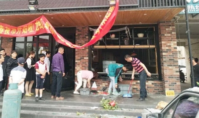 臨街對(duì)門的一家店鋪經(jīng)營者告訴記者,事發(fā)時(shí),聽到院子里動(dòng)靜比較大,他趕緊出來察看,發(fā)現(xiàn)餐館的櫥窗已經(jīng)飛出去了?!暗觊T口停著兩輛車,行人繞著車走,飛出來的玻璃砸在車上,沒有傷到路人。事故發(fā)生時(shí),正好餐館下午休息,店里沒有消費(fèi)者,員工也下班了,未造成人員傷亡?!?/div>