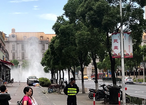 據目擊者介紹,事發(fā)時看到和炯路三彩路噴出大量白色煙氣,氣體噴射高度約有10米,氣體噴出時,發(fā)出巨大的“嗤嗤”聲,附近街道上彌漫著煤氣味。接到報警后,相關部門迅速到場,民警在事發(fā)地附近多個路口拉起警戒線,并疏散圍觀市民。消防隊員鋪設水帶,并在泄漏點附近打起水幕,防止現場氣體遇火星后發(fā)生發(fā)生危險。燃氣公司搶修人員則尋找該管道閥門,約1小時后,閥門被關閉,氣體停止噴射。