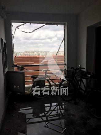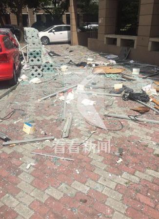 事發(fā)時,周邊居民聽到巨響,隨后有人感到震動,事故發(fā)生后,該幢大樓內不少居民家中受到殃及,幾個樓層的居民家里玻璃窗被震碎,大量玻璃碎片、窗框、書籍等雜物掉落在小區(qū)通道上,多輛轎車擋風玻璃被砸穿,小區(qū)草坪、通道上到處是散落的碎玻璃渣和各種生活用品。