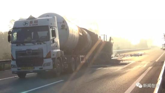 廣西:貨車(chē)追尾引燃19噸天然氣 事故造成兩人死亡