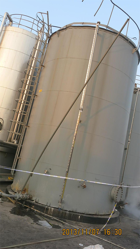 | 2013年10月份 | 九江天賜公司員工巡檢時(shí)就發(fā)現(xiàn)電解質(zhì)二期廢酸儲罐區(qū)A罐出現(xiàn)液位計(jì)穿孔等問題,采取了臨時(shí)措施堵漏。 | |